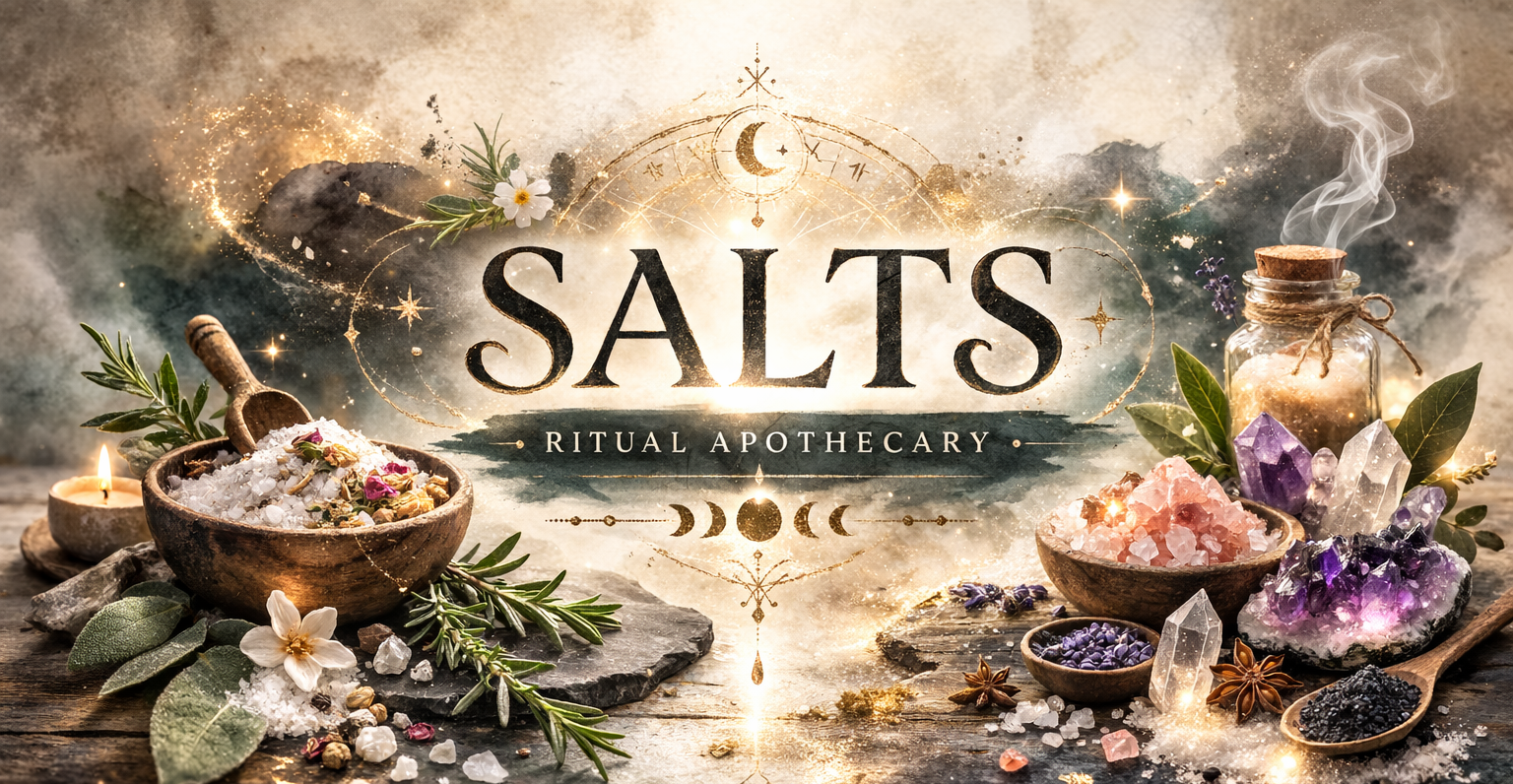 So saltcombined with other powerful ingredients, you get some special things. All of my salts, (except the Himalayan salts which are used in the preparation of other types of salt) are hand ground in a proper ritual with intent specific to their particular type. Our salts are sold by weight not volume. Except for the smaller vials, which are more suitable for placement on your altar, night table or desk, the larger jars all contain a clear quartz crystal to amplify the power of the salt. You will periodically want to charge the quartz crystal. Our salts are packaged in jars and tins, so my personal recommendation is for your first time purchase get a jar or tin and after that buy refills in plain baggies without the quartz crystal. Unless you just like collecting jars.
